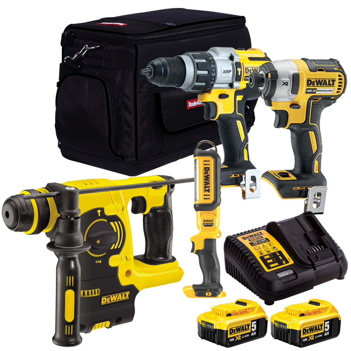 Dewaltth 18V 4 Piece Power Tool Kit with 2 x 5.0Ah Battery & Charger T4TKIT-179