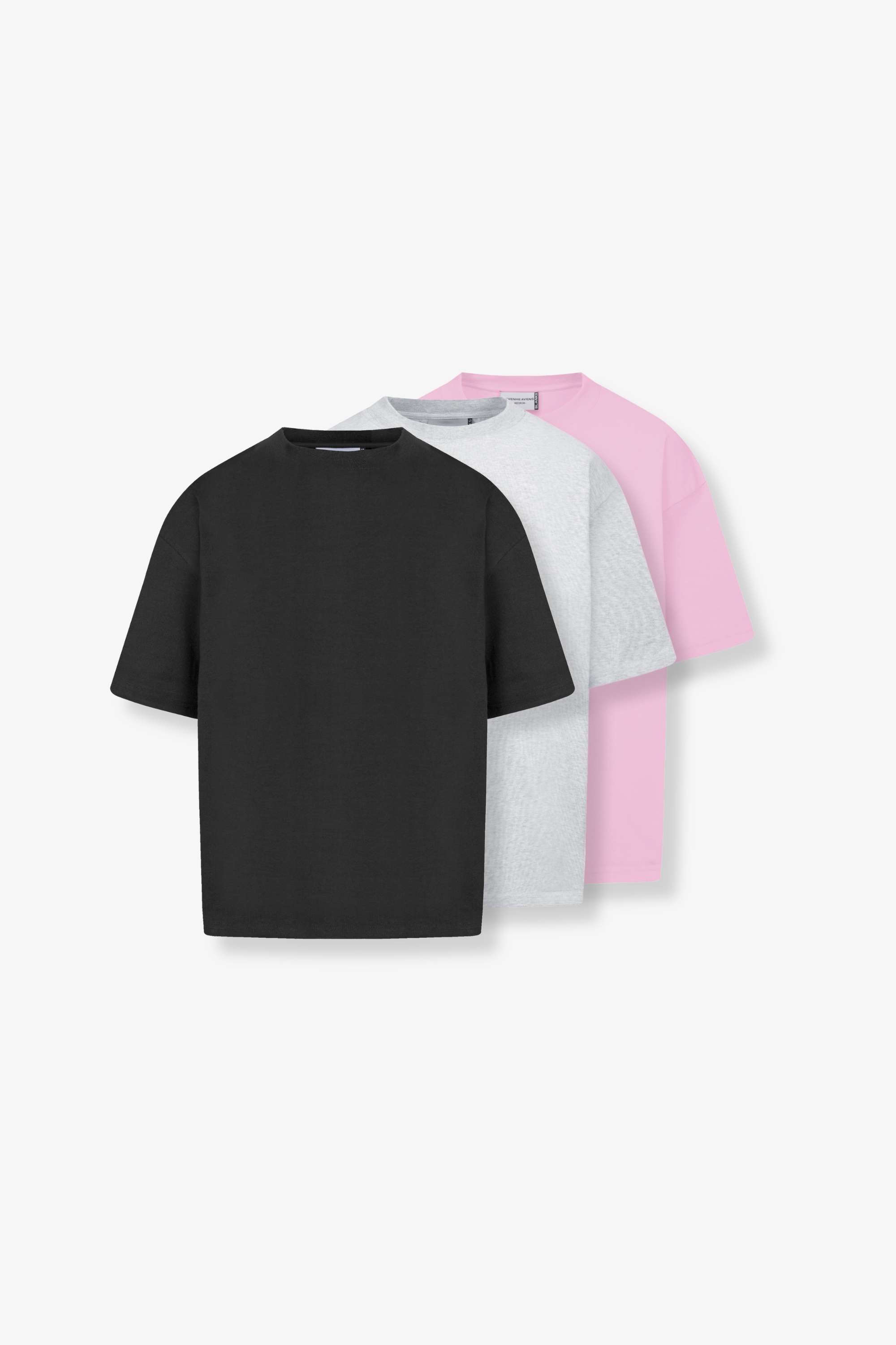- 3er Set Heavy Blank T-Shirt in Black, Heather Grey & Cotton Candy